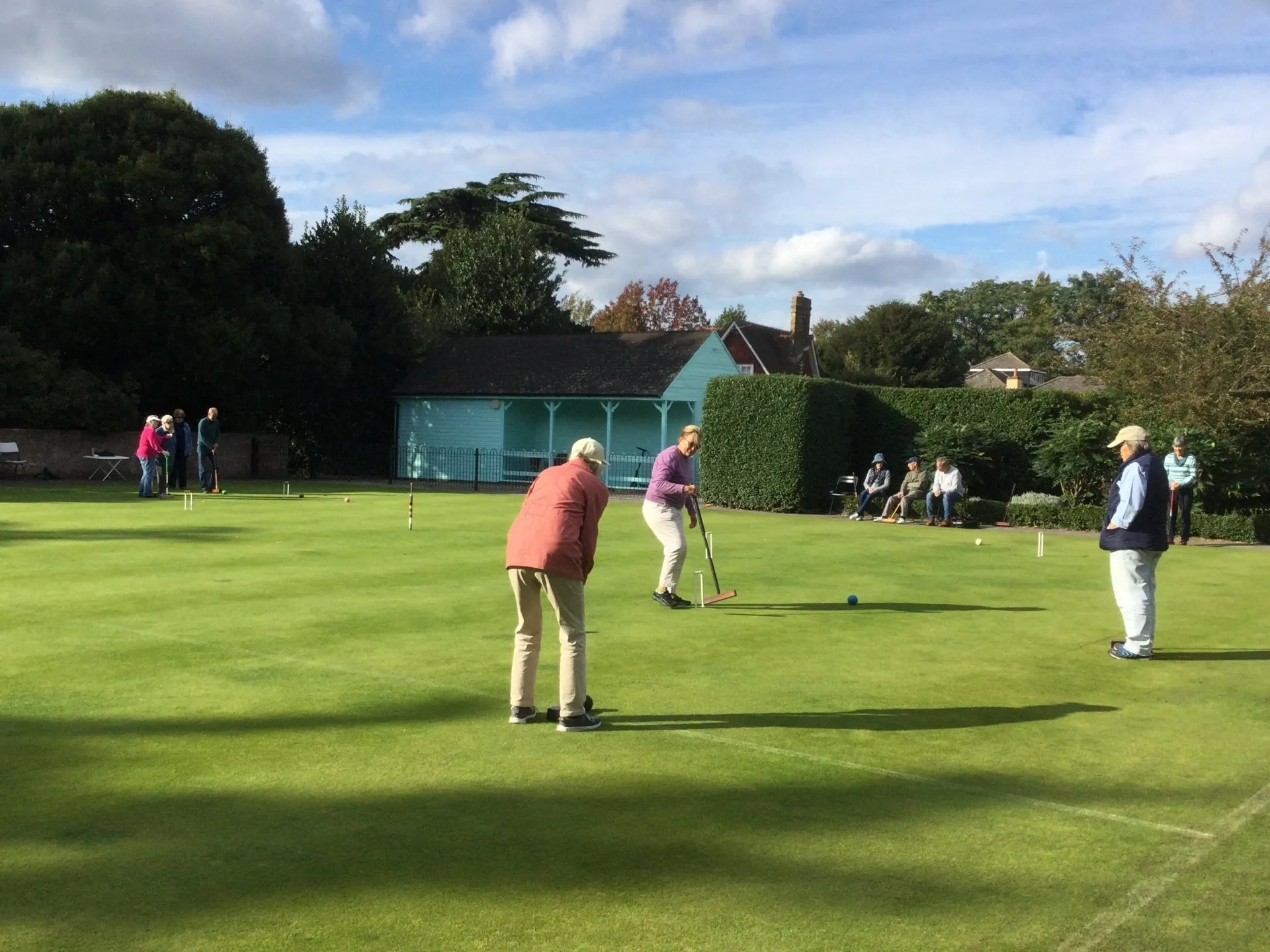 We play both Association Croquet and Golf Croquet. New members are offered coaching, usually on a Tuesday morning but other arrangements can be made if you cannot manage this.